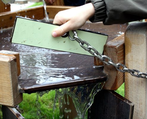 Wasser marsch: eine weitere Attraktion eröffnete Geschäftsführer Sebastian Schimming auf dem Gelände des Standortes des KreativitätsSchulzentrums in Friedrichshain. Beim Wasserspielplatz haben Kinder die Möglichkeit, mit Pumpen und Wasserrädern das Element Wasser spielerisch zu erleben. Auf der Hügellandschaft und auf der Hängebrücke stärken die Kinder ihre motorischen Fähigkeiten.